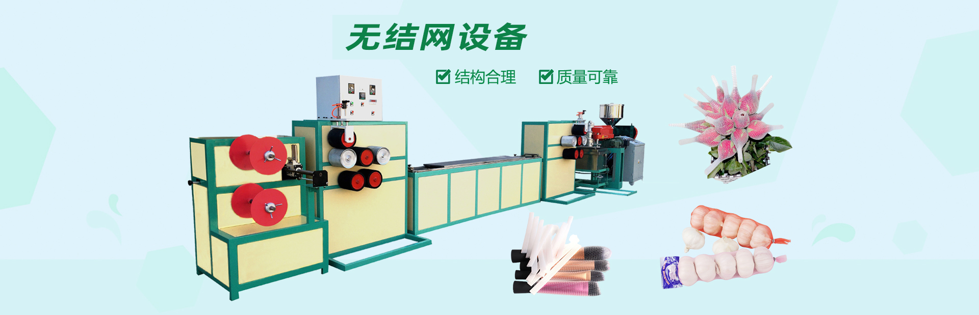 龍口市山河塑業(yè)有限公司生產(chǎn)的發(fā)泡網(wǎng)套機,用于水果、蔬菜、花蕾及瓶類的外包裝。我公司具有多年的實踐經(jīng)驗和可靠的技術(shù)力量,根據(jù)市場需求開發(fā)各種規(guī)格的網(wǎng)套。每24小時生產(chǎn)蘋果網(wǎng)套80萬-120萬個,設備驅(qū)動電機采用變頻控制,調(diào)速精度高、范圍廣、能耗低、運行可靠每小時僅用電10度左右,產(chǎn)量提高。此外,該生產(chǎn)線配置不同的模頭和輔機可生產(chǎn)發(fā)泡片、發(fā)泡管、發(fā)泡棒、發(fā)泡條及異型材等產(chǎn)品。